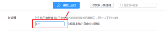4、在鼠标选中编辑框时,在键盘上同时按下需要设置的按键,看到悬浮框提示设置成功,即完成老板键的更换。