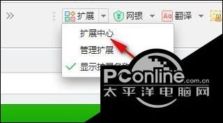 1、如果没有默认安装翻译扩展,可以点击扩展的倒三角,打开扩展中心,点击打开。