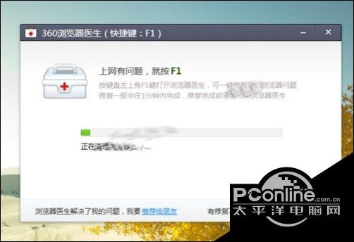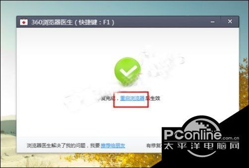 2、在新窗体中点击界面的“一键修复”按钮,如图所示,正在修复浏览器,稍待片刻即可修复完成,修复完成后点击“重启浏览器”以重启360浏览器查看收藏夹是否可正常使用。您可以点击窗口右下角的“强力修复选项”强力进行360浏览器的修复。