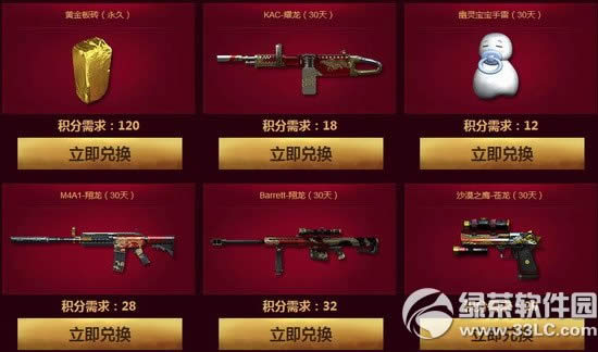 不想竞拍那就兑换吧怎么样?竞拍区的激烈程度是不是很疯狂,以为自己稳稳得拿到了转眼价格飙升哇..... 没关系,这里是属于你的自由天空,想要的武器可以直接使用积分兑换,再也不怕别人来抢了。所有道具数量有限,兑完即止。
