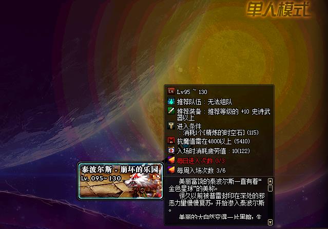 三、顶级副本(可以获取95级可升级装备,俗称泰波尔斯史诗)