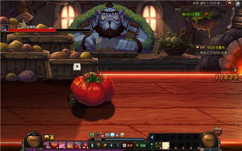 该副本由左向右通关,第一个房间是准备房间,直接进入下一个房间,第二个房间玩法是依靠蔬菜的阴影躲避正在做饭的巨人的视野一直向右移动到下个房间,这里需要注意的是不能长时间暴露在巨人视野下(红区域),否则被巨人发现后会受到攻击。
