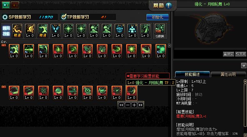 全职业新增60级和70级技能的TP技能属性: