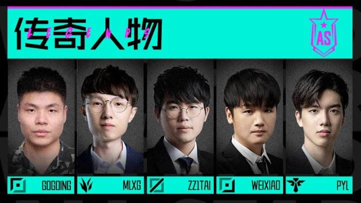 传奇人物则分别是由Gogoing、Mlxg、姿态、微笑以及Pyl组成。