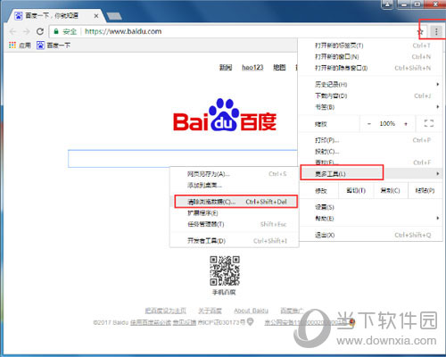 1、启动规格浏览器,然后在其节目右上角的菜单中找到“清除浏览数据”功能,如下图: