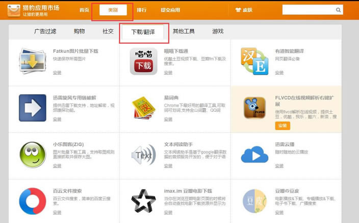 如果觉得这个不好用那么我们还可以在猎豹应用市场的类别里找到翻译,选择一个自己喜欢的下载安装就可以使用了。