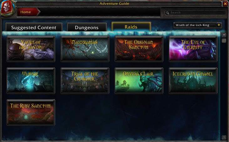 新版本的地下城手册,可以在下拉框中选中巫妖王之怒、燃烧的远征以及经典旧世的团队副本。