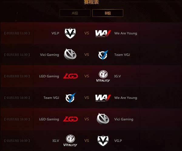 B组最大的看点无疑是“死亡分组”,LGD,IG.V,VG,VG.J分在一组,还有实力不俗的VG.P,WAY战队一起争夺出现名额。