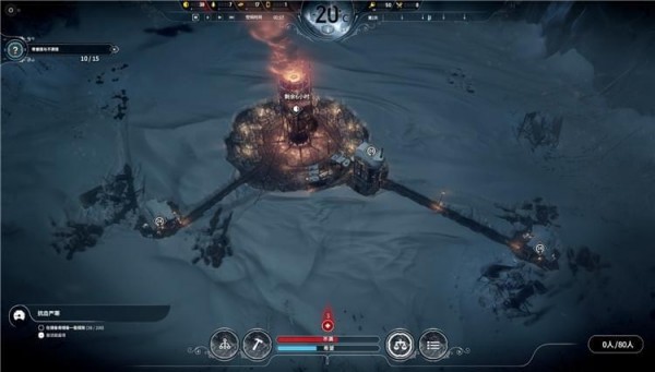 开局工作安排好,就来第一次基建,如下图,首选开始建筑是2个收集站。收集站可以用更少的人口,更安全性的保障工人工作,比你在冰天雪地里工作