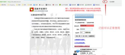 这里以国家开发银行助学贷款信息网为例,该网站只能用IE浏览器才能正常登录使用,当我们用极速模式点击进入登录的时候会弹出不能使用的提示