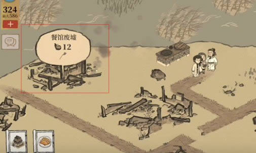 此时需要你给他烧饭吃,来到左上角,可以做这个梅菜扣肉,其中锅铲就是在旁边的餐馆废墟里面,可以调查得到。