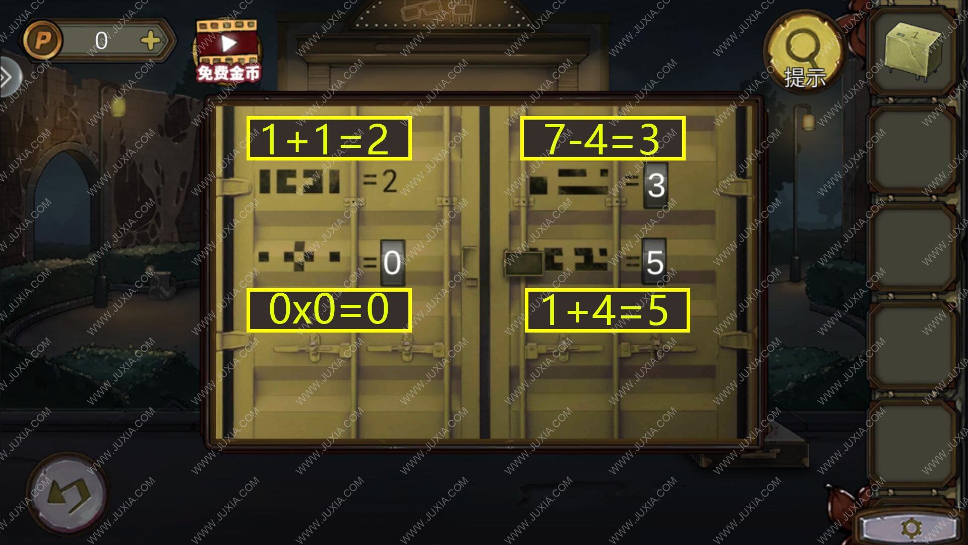 20.点击集装箱,解开密码。根据它的第一个密码提示,可以看出这其实是4个计算式(如图)。20.1