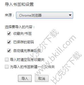 3、选择导入浏览器的书签后,我们还要勾选上“收藏夹/书签”,之后点击“导入”就可以了;