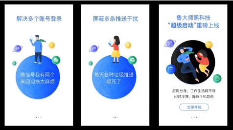 超级启动时鲁大师自主研发的黑科技,比如微信应用,一个工作使用,一个生活使用,两个号可以同时在线,互不干扰,这就是双开!