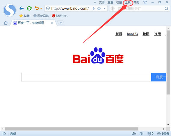 1、首先我们打开搜狗浏览器,然后在右上方找到“工具”按钮;