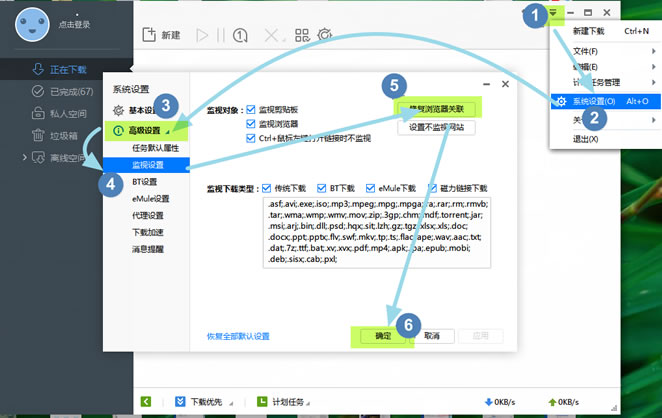 5、另外迅雷7中有一个“修复浏览器关联”的功能,如果你使用的不是迅雷9,那么直接按照下图操作即可。