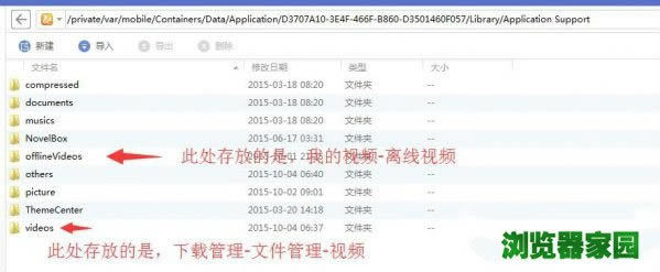 直接进文件夹目录,这个手机的文件目录 /private/var/mobile/Containers/Data/Application/D3707A10-3E4F-466F-B860-D3501460F057/Library/Application Support/offlineVideos D3707A10-3E4F-466F-B860-D3501460F057 这个目录可能每台手机不同请注意!