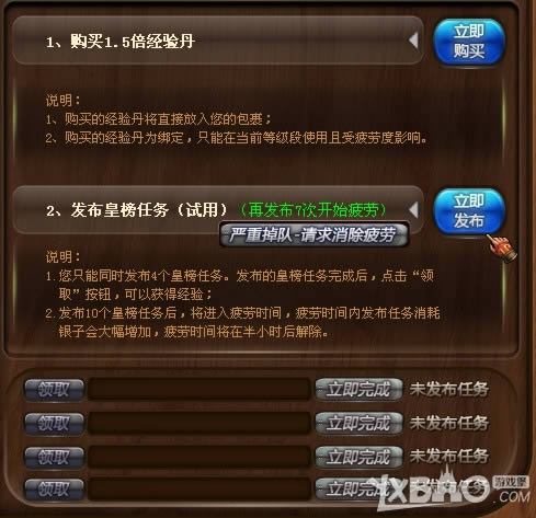 4、发布10次后进入疲劳期,需等待半小时才可恢复。疲劳期发布皇榜任务消费逐步增加。