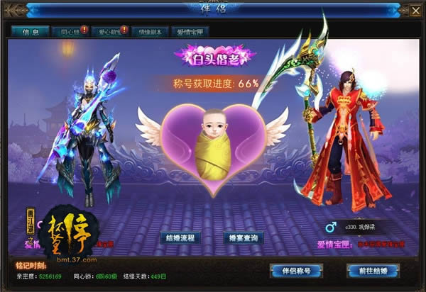 练级之路漫漫长,要是有伴侣的陪伴,就连枯燥的刷怪都变得有趣。玩家在37《杯莫停》中达到213级后将自动开启伴侣系统,可通过对心仪的异性玩家进行提亲,前提是同时双方亲密度到达一定值后。如果开服期间完成三档提亲,可获得稀有称号。