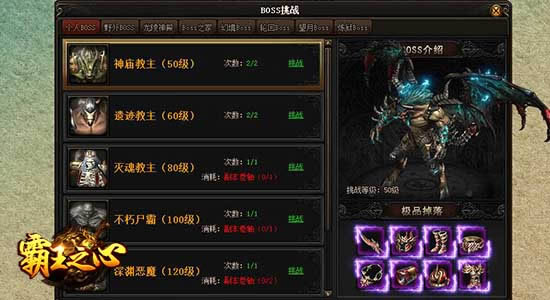 关键词:无尽的试炼《霸王之心》挑战BOSS决战生死