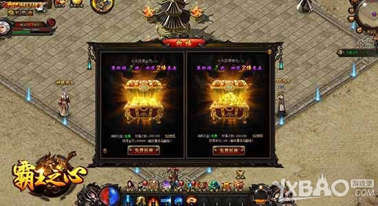 在9cb《霸王之心》游戏主界面,点击每日祈福图标即可进入祈福界面,在祈福界面中,共有左右两个巨大的黄金宝箱,玩家可以向宝箱祈求财富。向左边宝箱祈福可以获得金币,而向右边宝箱祈福则会获得绑定元宝。
