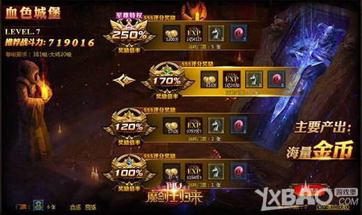 《奇迹重生:魔剑士归来》的副本玩法不但继承了传统副本中的“门票”元素,更是开创了全新的高奖励副本玩法。使用更多门票进入副本,并且获得足够的通关评分即可获得更高更多的副本奖励。