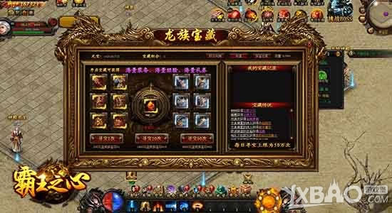 龙族宝藏是9cb《霸王之心》中最刺激的一个玩法,玩家消耗元宝或者探宝符即可开启龙族宝藏的寻宝之旅。寻宝最高可获得顶级转生装备套装、霸王神套装、极品道具霸王之心等等,玩家所获得的道具会被放入探宝仓库中,完全不用担心自己的包裹放不下!