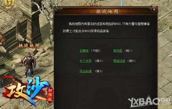 《攻沙》新推地下城——玛法秘境,潜藏着5大BOSS,每一只BOSS都是超级强者,如果你没有10W以上战斗力,建议还是不要轻易尝试。另外,玛法秘境中的大部分BOSS,都是全地图无限追踪,也就是说,你不小心招惹了其中之一,除非你跳出地图,否则它就会始终追着你,直到你阵亡为止。