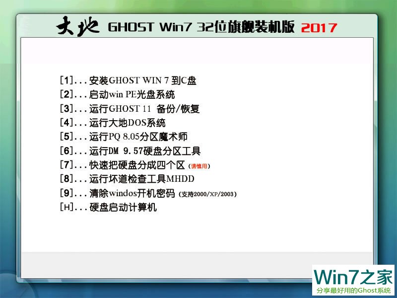 大地GHOST WIN7 32位旗舰装机版 V2017.04