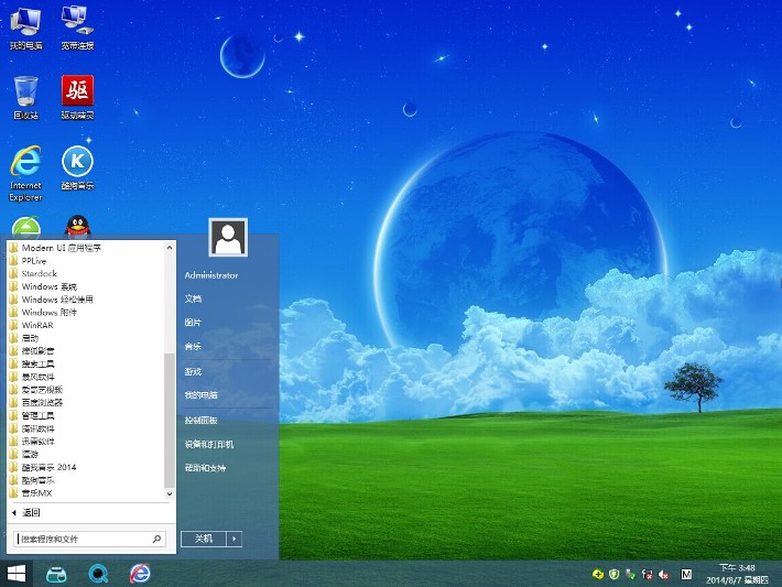 4、系统保持Windows8.1功能的同时,进行了Windows7方向的优化(比如加入了大家熟悉的开始菜单,将原另类